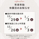 年末年始、休業日のお知らせ