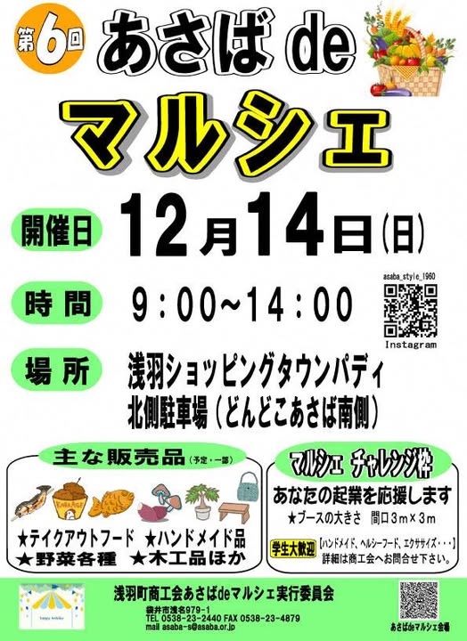 問合せ:浅羽町商工会あさばdeマルシェ実行委員会 ☎️0538-23-2440