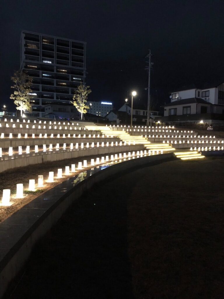 田端東遊水池公園には地元の保育園、幼稚園など子どもたちが作った心温まる手作り行灯256基が優しくライトアップ。