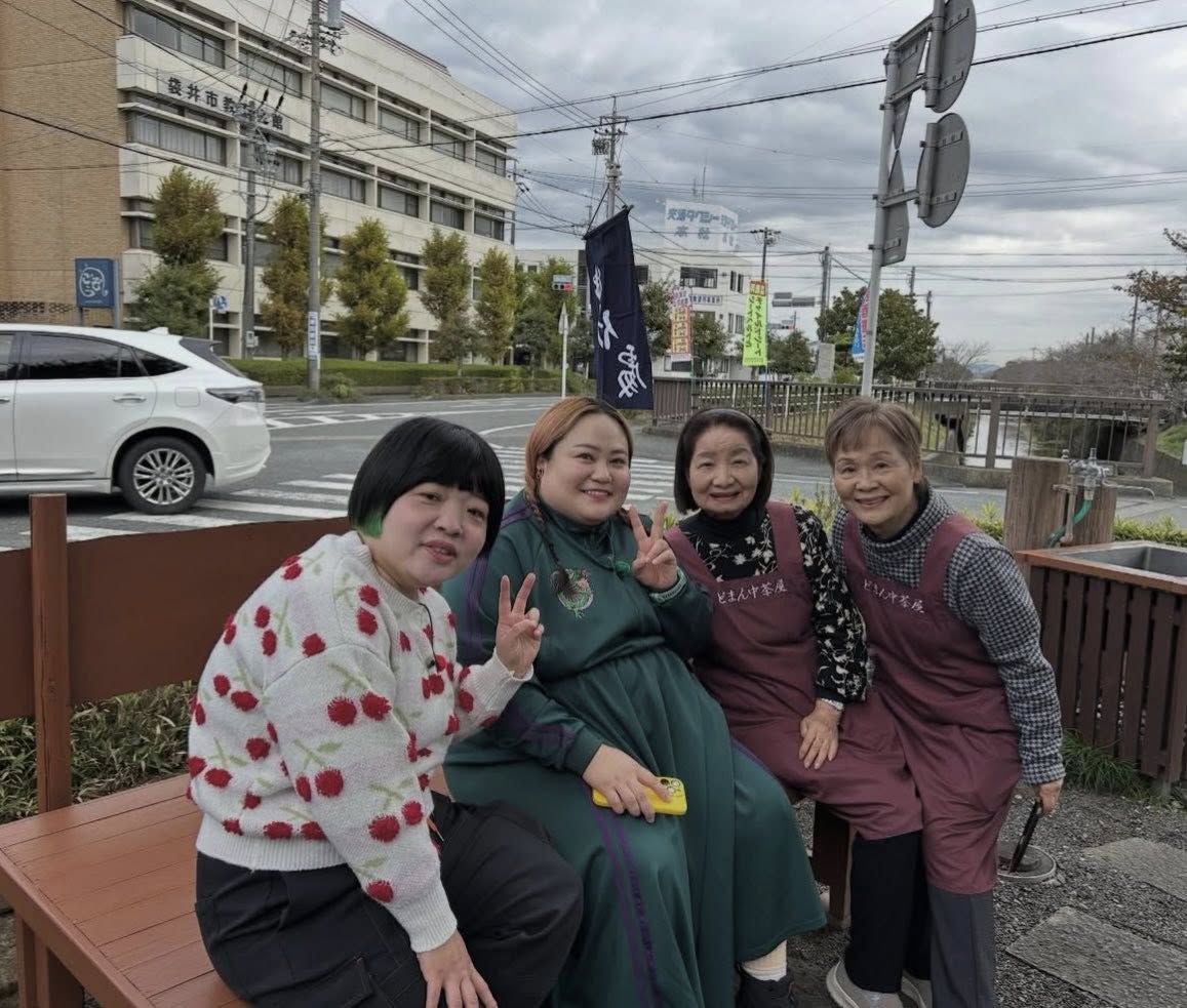 お笑い芸人の「おかずクラブ」のお二人が茶屋に訪れ、袋井のお茶を楽しみながら茶屋スタッフの皆さまと交流されました。