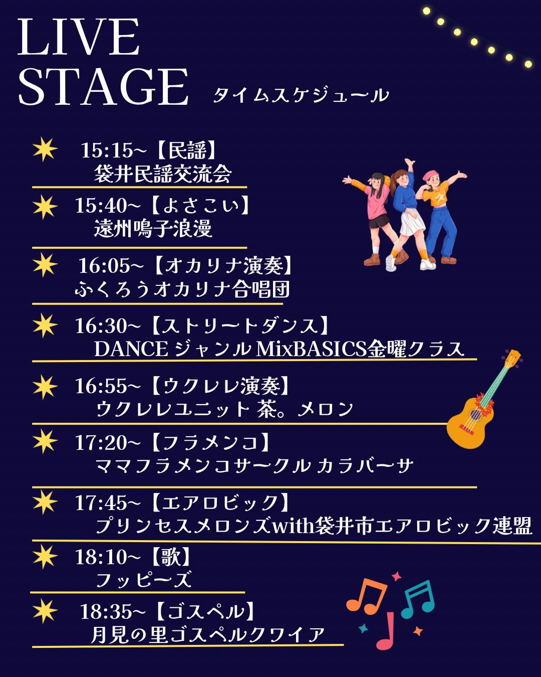 ライブステージタイムスケジュール&出演者紹介