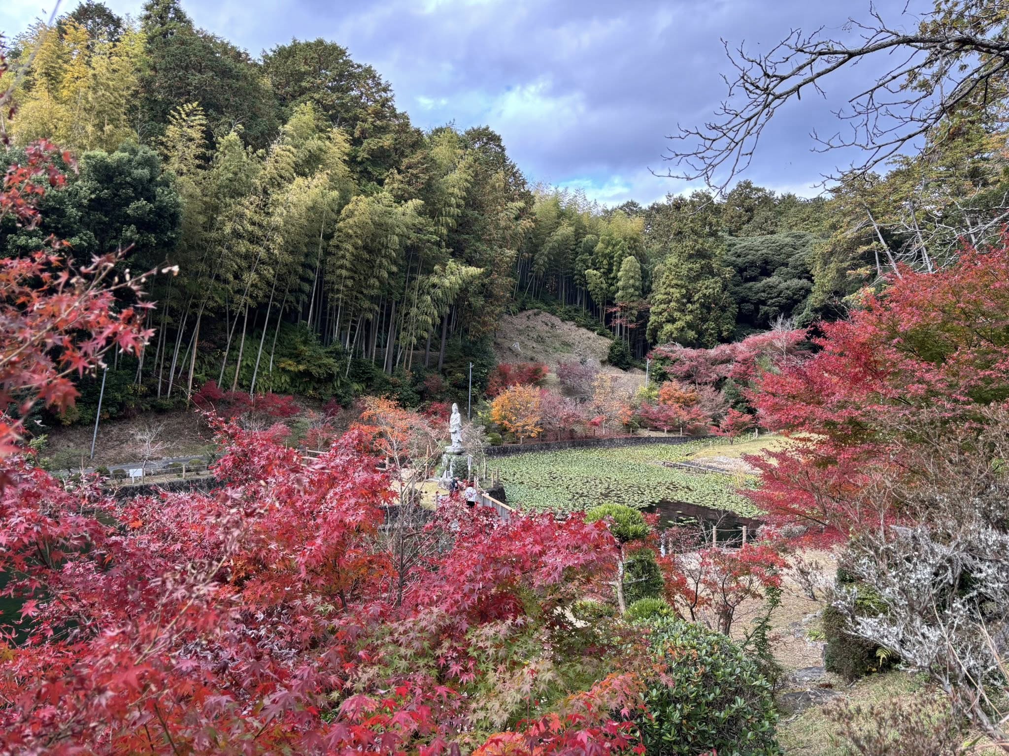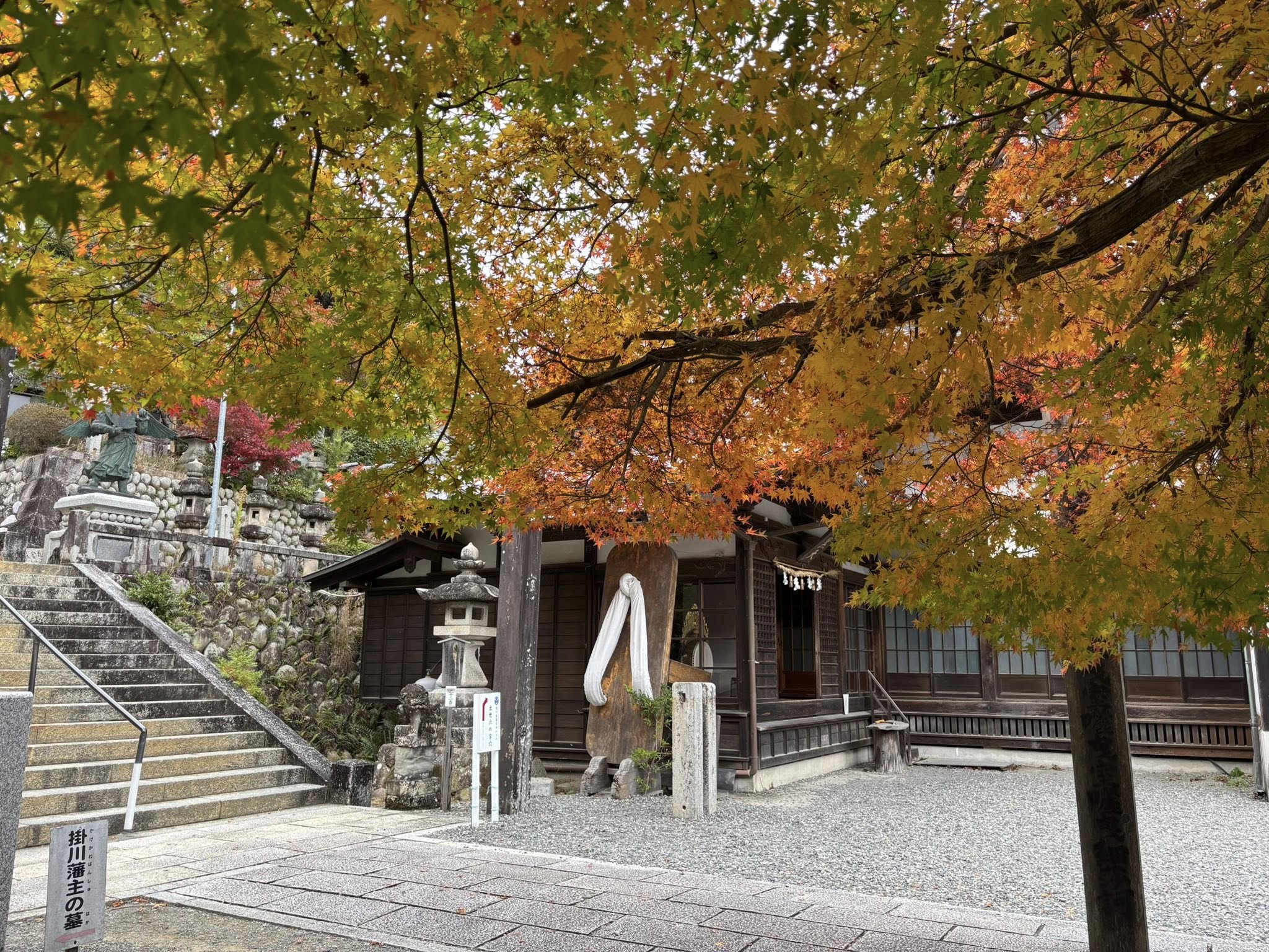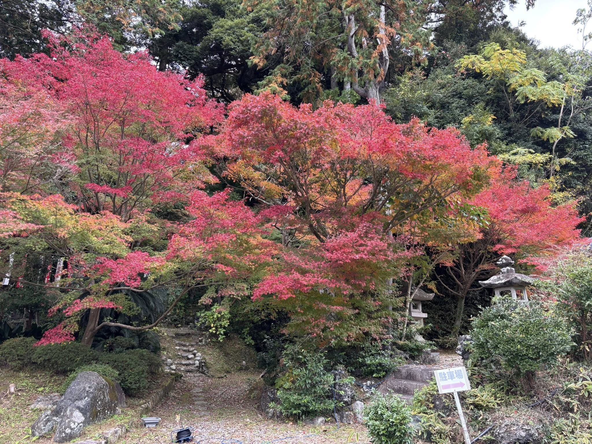 鮮やかな紅葉が境内を彩り、美しい景色が広がっています。